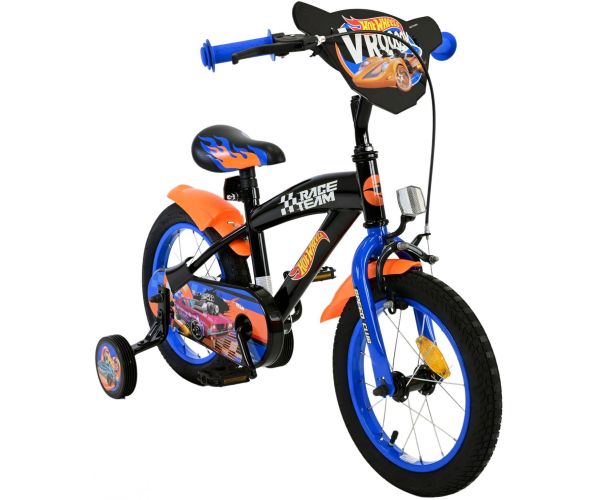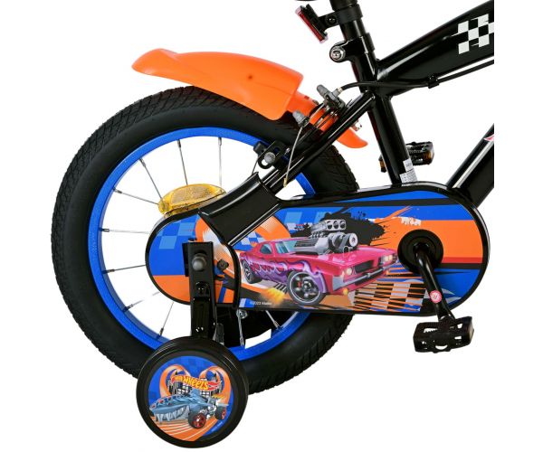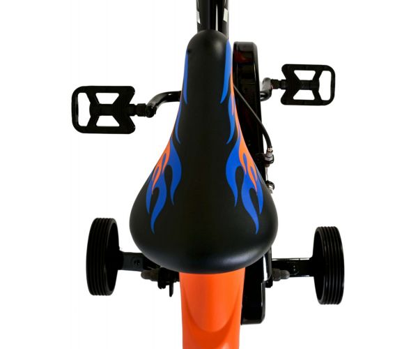 Safety comes first! Therefore, this cool bike has a handbrake and coaster brake and a closed chaincase. In addition, the bike has removable training wheels to learn to ride a bike quickly, and reflectors in the pedals. Comfort has also been thought of. The beautiful black Hot Wheels bike with blue and orange accents has a pleasantly soft saddle and a unique frame that can take a beating. To enjoy the bike as long as possible, the saddle is adjustable in height. In short: a top quality bike that your child can enjoy for years to come!