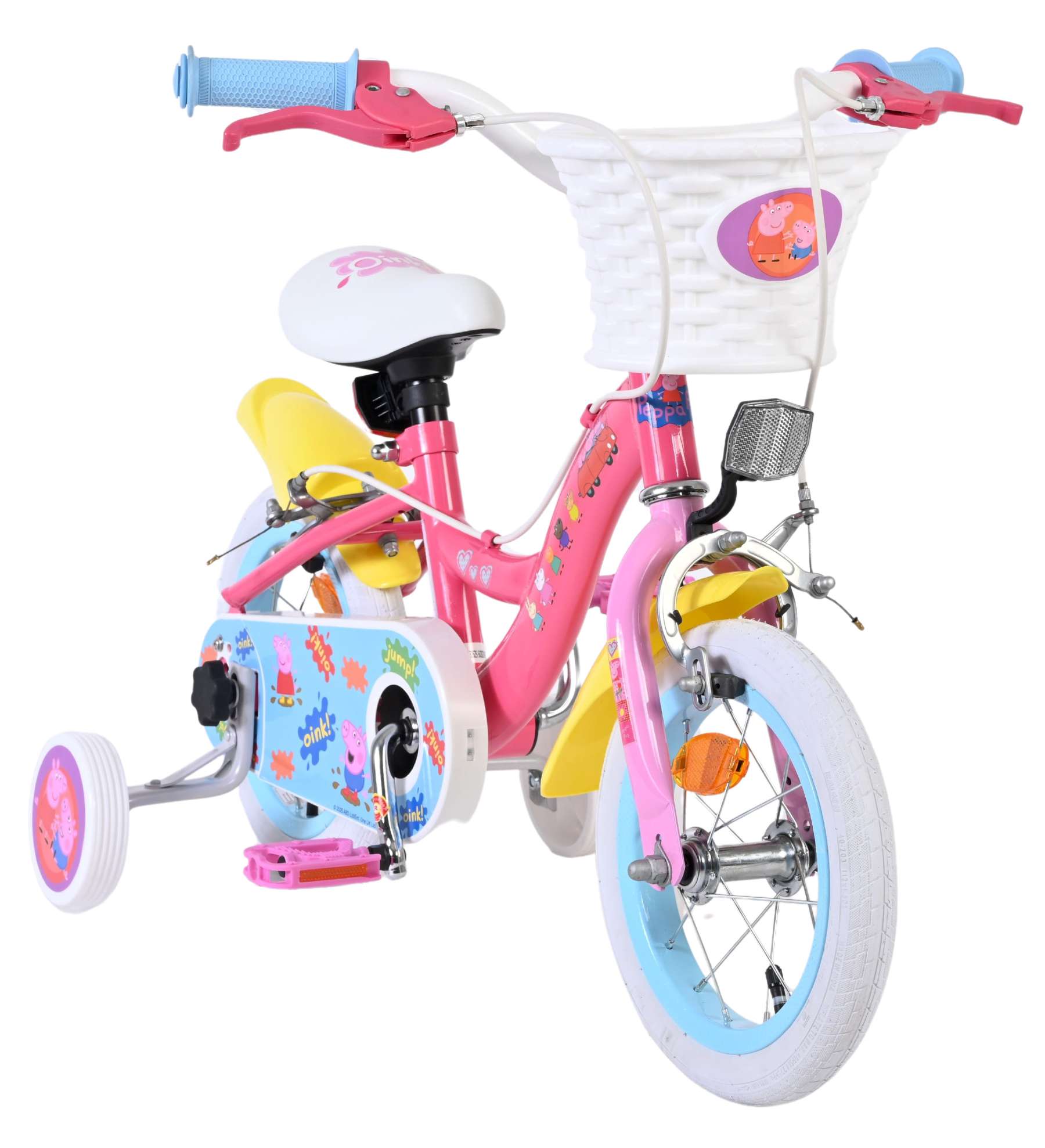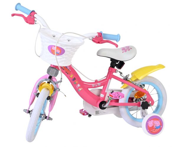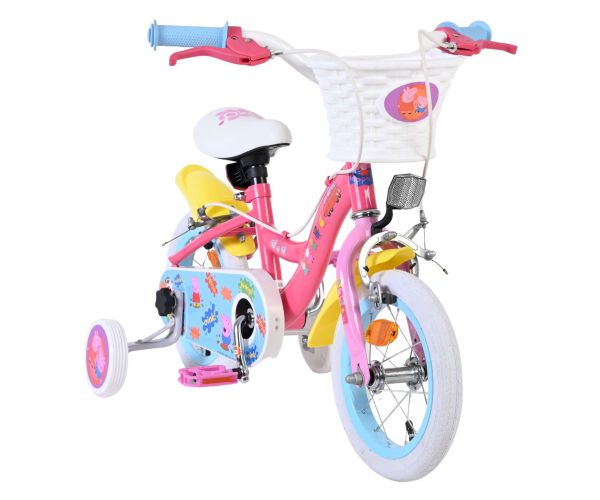 De Volare Peppa Pig 14 inch kinderfiets is perfect voor kleine Peppa-fans die graag op avontuur gaan! Deze vrolijke fiets is uitgevoerd in zachte Peppa Pig-kleuren en heeft een leuk mandje aan het stuur, ideaal om een favoriete knuffel of speelgoed mee te nemen tijdens elke rit.