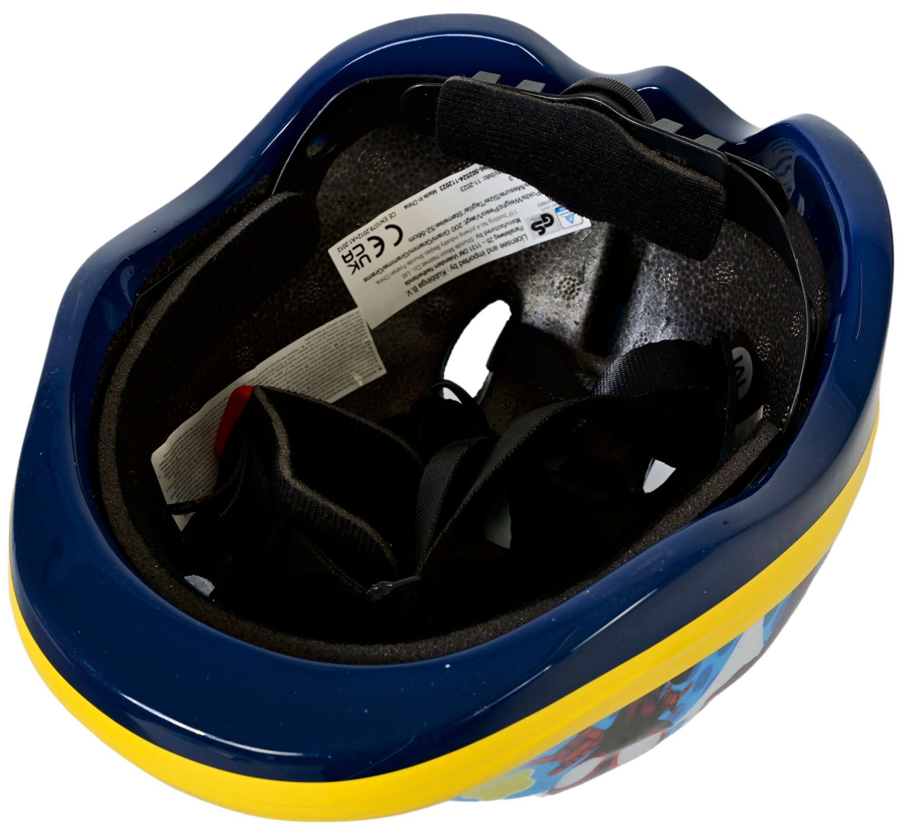 Volare Children's Bikes has a large collection of licensed helmets. One of them is this wonderful Spidey bicycle helmet. The beautiful blue color and Spidey decorations give the helmet a perfect look. With the dial, the head circumference of the helmet is adjustable from 52 to 56 cm. Thereby, the bottom of the helmet is also covered. The helmet weighs only 200 grams. This makes it extra light and thus easy to wear. The helmet is approved to the strictest requirements of the TÜV/GS.