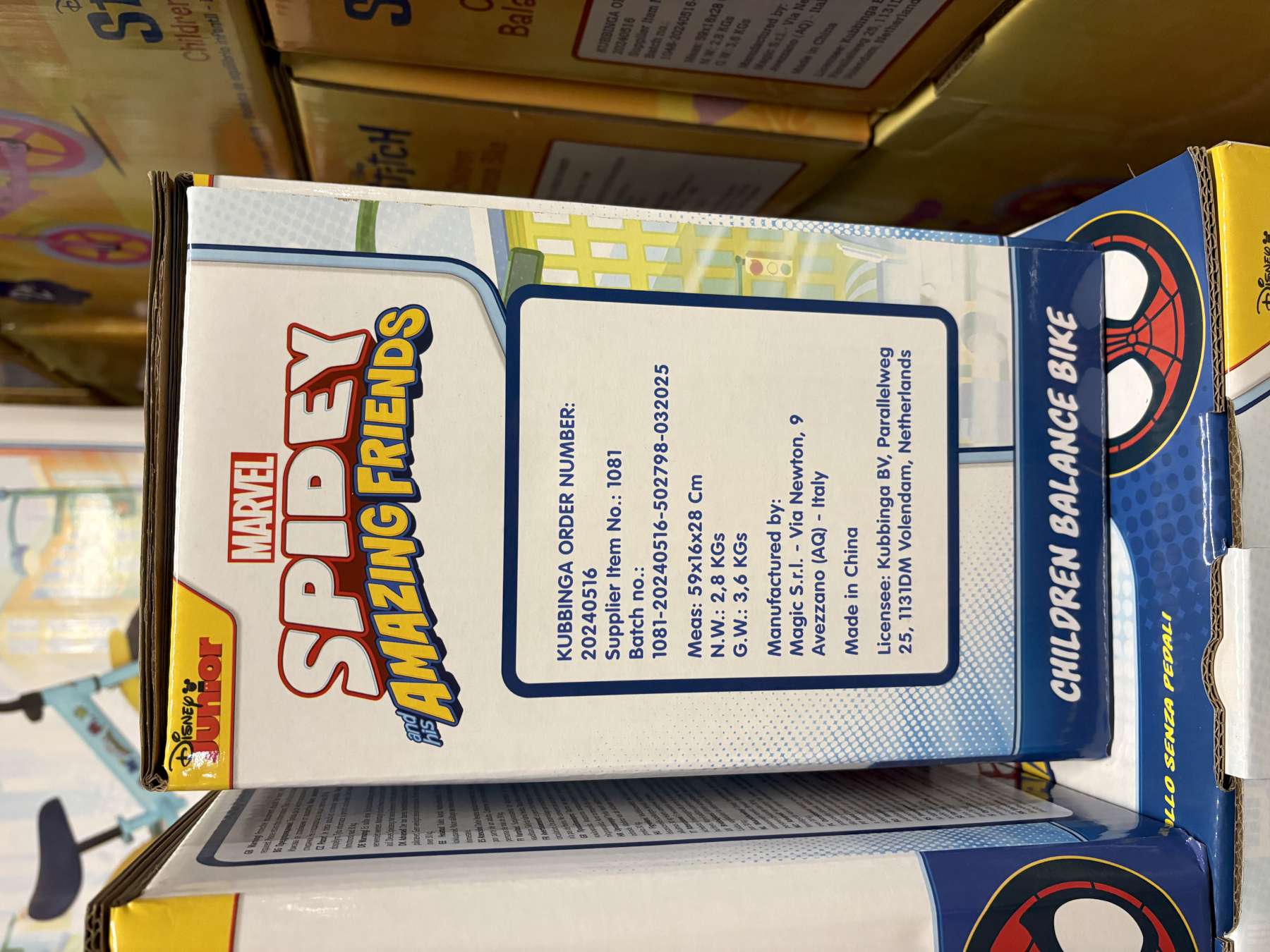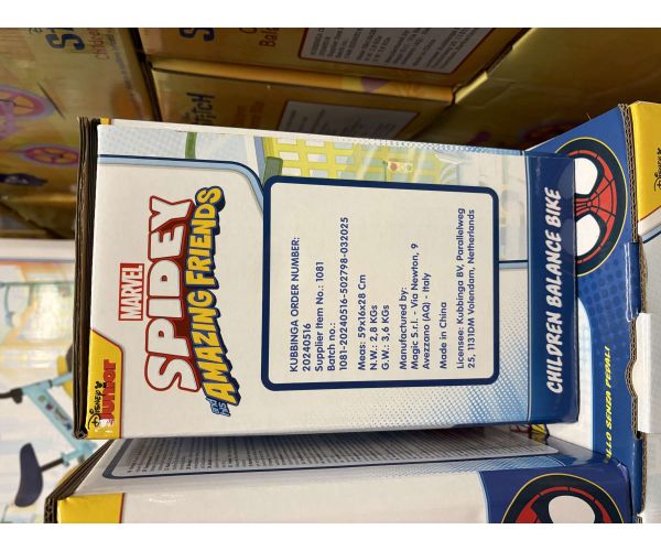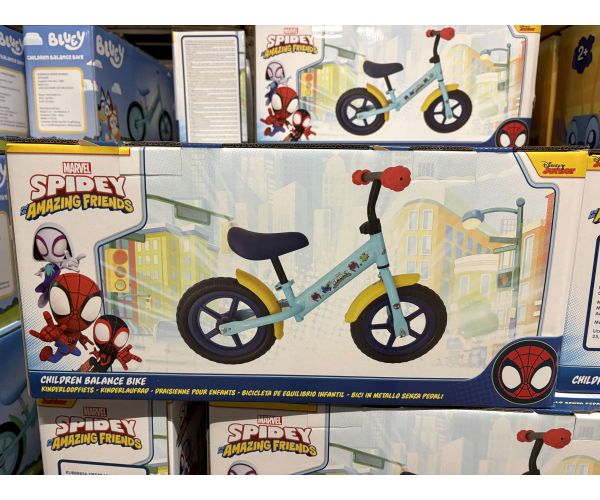 Klaar voor actie? Met de Spidey and his Amazing Friends loopfiets beleeft jouw kleintje zijn allereerste superheldenavontuur! Deze stoere lichtblauwe loopfiets met donkerblauwe wielen en rode handvaten is speciaal gemaakt voor jonge fans van Spidey, en geschikt voor kinderen van 1 tot 3 jaar. De fiets is versierd met kleurrijke afbeeldingen van Spidey en zijn team, waardoor elke rit voelt als een missie om de wereld een beetje beter te maken.