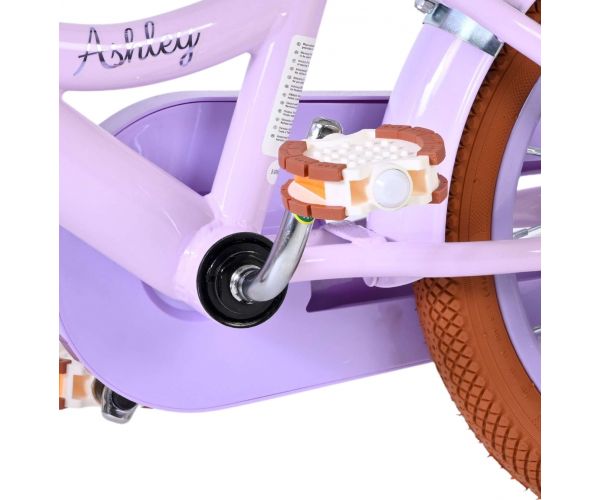 De Volare Ashley 14 inch kinderfiets is een perfecte combinatie van comfort, gebruiksgemak en een vrolijk design. Deze mooie lila fiets is uitgerust met zowel een terugtraprem als een handrem, zodat je kind op een prettige manier leert remmen. De afneembare zijwielen zorgen voor extra stabiliteit tijdens het leren fietsen en kunnen eenvoudig worden verwijderd zodra je kind meer vertrouwen heeft.