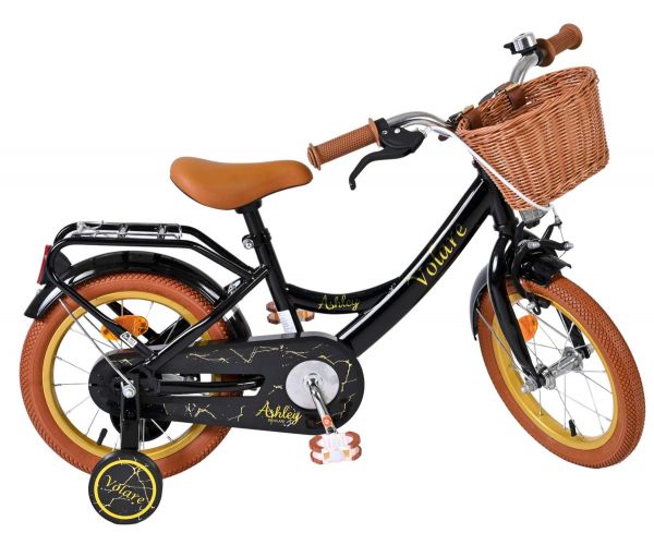 De Volare Ashley 14 inch kinderfiets is een perfecte combinatie van comfort, gebruiksgemak en een vrolijk design. Deze mooie zwarte fiets is uitgerust met zowel een terugtraprem als een handrem, zodat je kind op een prettige manier leert remmen. De afneembare zijwielen zorgen voor extra stabiliteit tijdens het leren fietsen en kunnen eenvoudig worden verwijderd zodra je kind meer vertrouwen heeft.