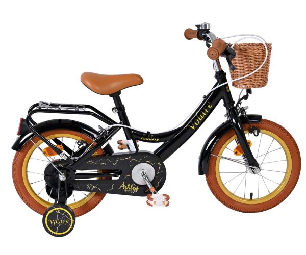 De Volare Ashley 14 inch kinderfiets is een vrolijke en comfortabele fiets die perfect past bij de volgende stap in het leren fietsen. Deze mooie zwarte fiets is uitgerust met twee handremmen (geen terugtraprem), zodat je kind op een gecontroleerde en vertrouwde manier leert remmen. De afneembare zijwielen bieden extra stabiliteit in het begin en kunnen eenvoudig verwijderd worden zodra je kind zelfstandig kan fietsen.