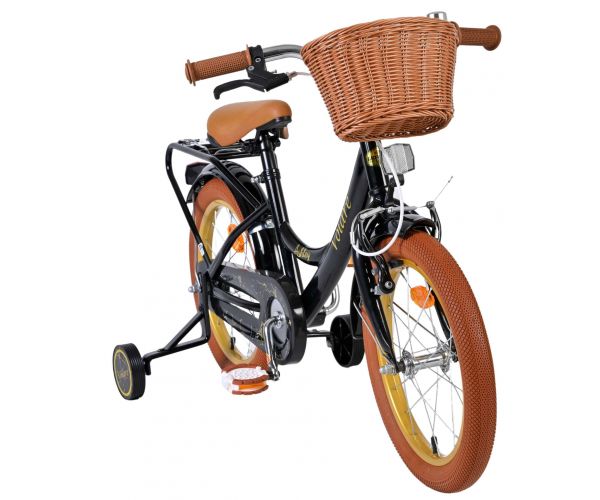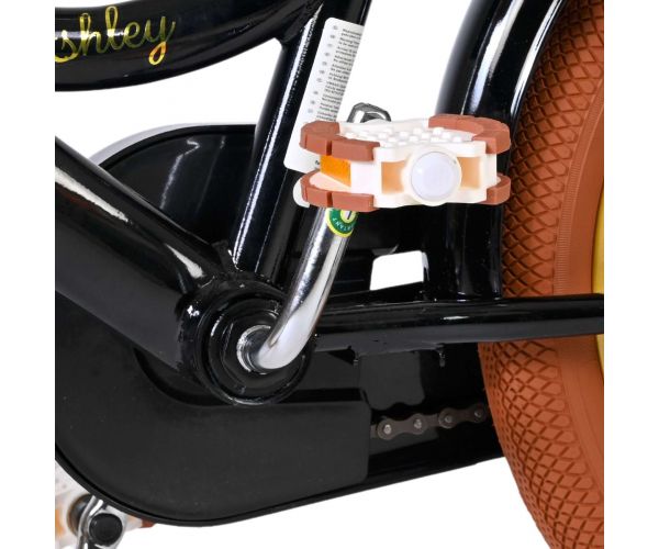 De Volare Ashley 16 inch kinderfiets is een vrolijke en comfortabele fiets die perfect aansluit bij kinderen die al wat zekerder fietsen. Deze mooie zwarte fiets is uitgerust met een terugtraprem en één handrem, zodat je kind op een natuurlijke manier leert remmen en extra controle heeft tijdens het fietsen. De afneembare zijwielen bieden ondersteuning waar nodig en kunnen eenvoudig verwijderd worden zodra je kind volledig zelfstandig fietst.