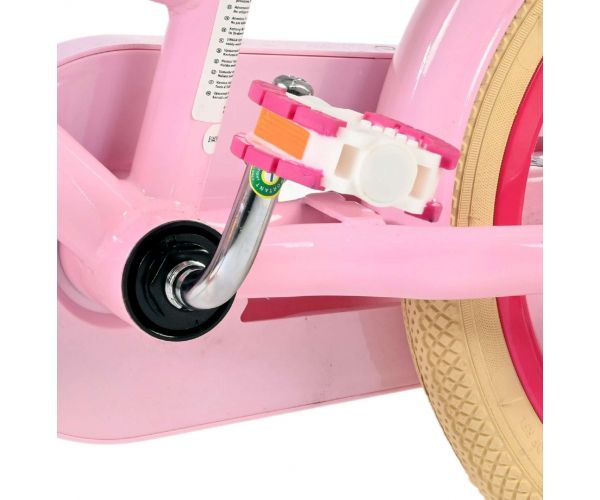 Safety comes first! That is why this cool bike has a hand brake and back pedal brake, removable side wheels and a closed chain guard. In addition, the bike has rear reflectors and a nice bell. Comfort has also been thought of. The beautiful pink Volare bike has a handy rear carrier, a luxurious soft saddle and a handy wicker basket. To enjoy the bike as long as possible, the saddle and handlebars are adjustable in height. Comes with all the assembly materials needed to assemble the bike!