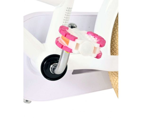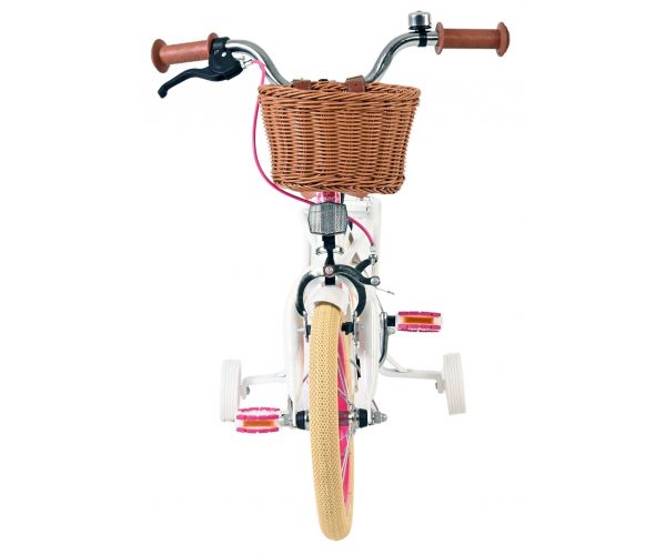 Veiligheid staat voorop! Daarom heeft deze gave fiets een handrem en terugtraprem, afneembare zijwieltjes en een gesloten kettingkast. Daarnaast heeft de fiets reflectoren achter en een leuke bel. Ook aan het comfort is gedacht. De mooie witte Volare fiets heeft een handige achterdrager, een luxe zacht zadel en een handig rieten mandje. Om zo lang mogelijk van de fiets te kunnen genieten zijn het zadel en stuur in hoogte verstelbaar. Wordt geleverd inclusief al het montagemateriaal dat nodig is om de fiets in elkaar te zetten!
