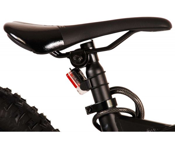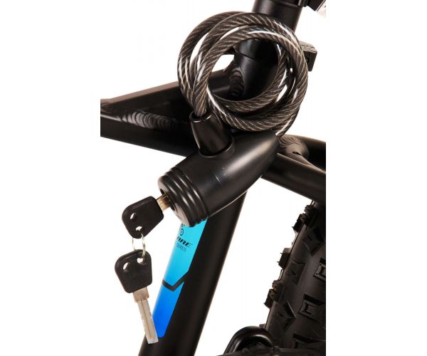 Safety comes first! That is why this cool bike does not have a back pedal brake but two hand brakes. In addition, the bike has front and rear lights, a sturdy lock, and a bell. The tilted handlebar stem provides a better view of the road, but is therefore not adjustable in height. Comfort has also been thought of. The beautiful black Volare bike with blue accents has an extra-light aluminium frame, a stand so your bike will stand neatly, extra-wide tyres, 7 gears, and soft handles made of craton. To enjoy the bike for as long as possible, the saddle is adjustable in height.