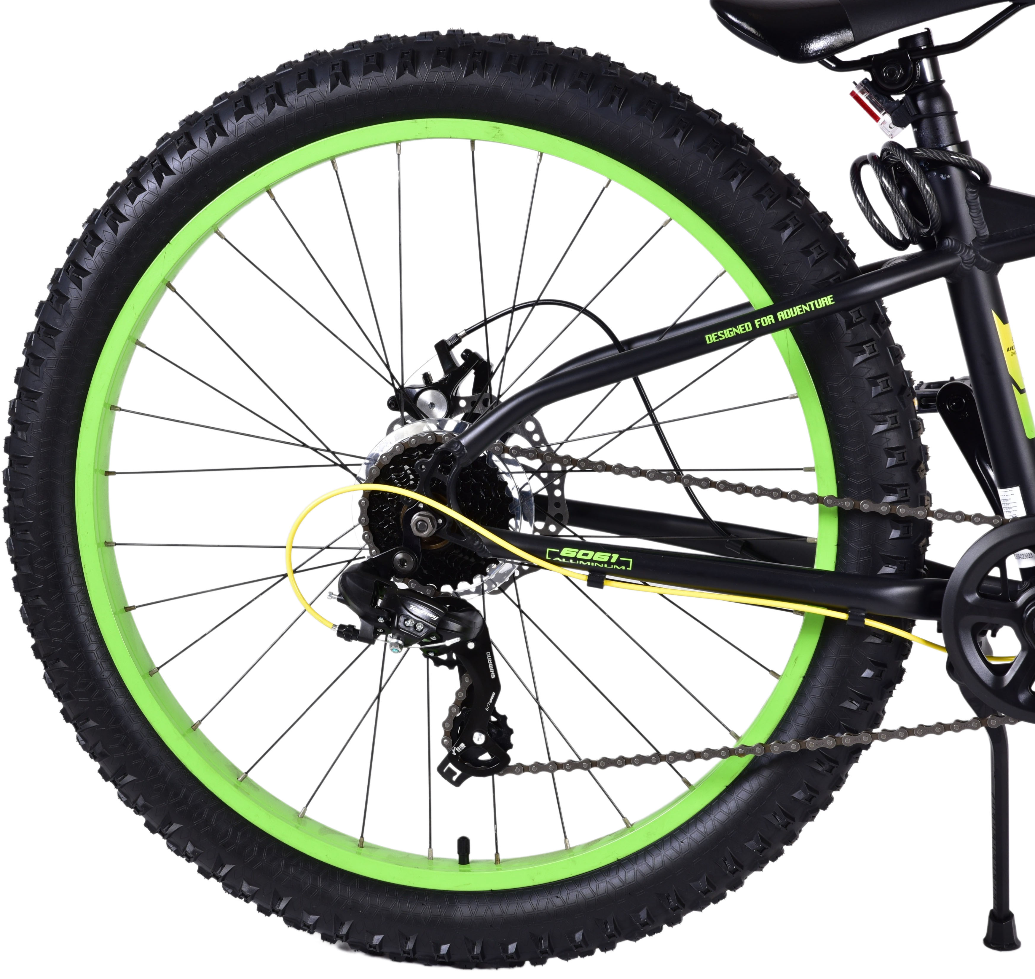 Safety comes first! That is why this cool bike does not have a back pedal brake but two hand brakes. In addition, the bike has front and rear lights, a sturdy lock, and a bell.. The tilted handlebar stem provides a better view of the road, but is therefore not adjustable in height. Comfort has also been thought of. The beautiful black Volare bike with yellow and green accents has an extra-light aluminium frame, a stand so your bike stays neatly in place, extra-wide tyres, 7 gears, and soft handles made of craton. To enjoy the bike for as long as possible, the saddle is adjustable in height.