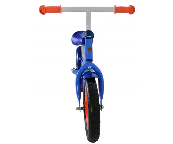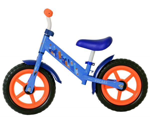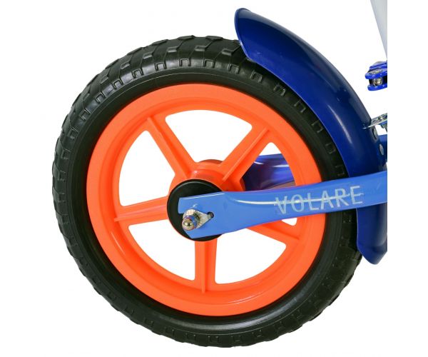 Deze stoere blauwe loopfiets is perfect voor kinderen van 1 tot 3 jaar die klaar zijn voor hun eerste avontuur op wielen. De fiets is stijlvol afgewerkt met donkerblauwe spatborden, een zadel in bijpassende kleur en opvallende oranje velgen en handvaten – een echte blikvanger!