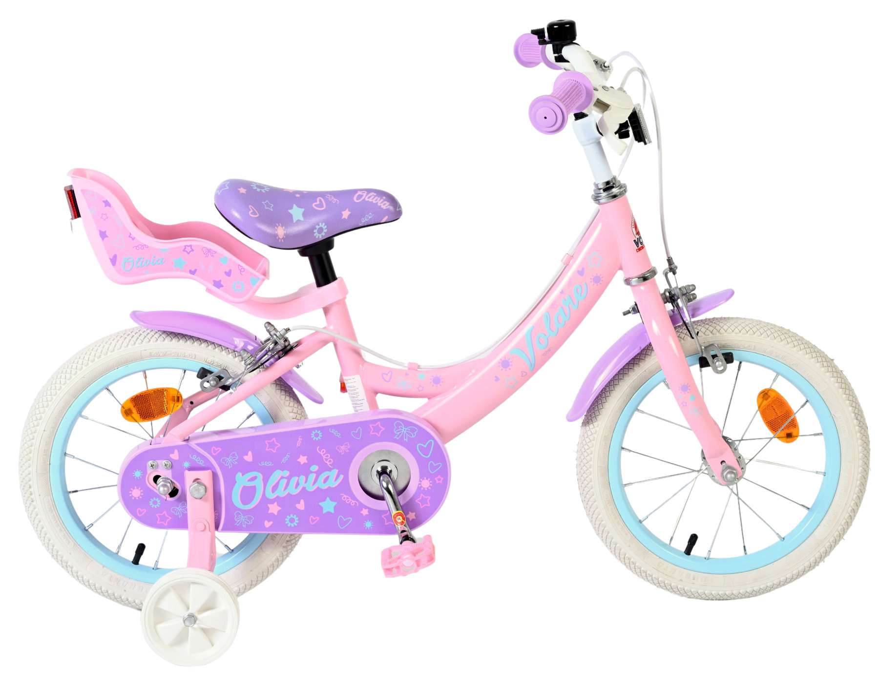 De Volare Olivia 14 inch kinderfiets combineert veiligheid, comfort en een lief design – perfect voor elk ritje vol plezier en fantasie.