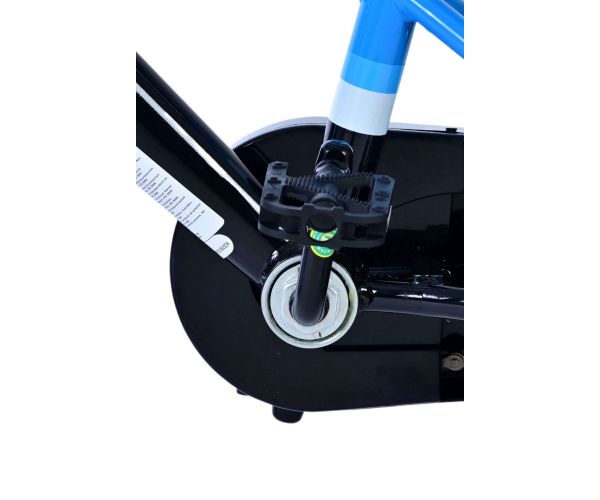 Safety comes first! That's why this cool bike has a closed chaincase to protect fingers. This bike has a coaster brake a hand brake and removable training wheels. Comfort is also thought of. The beautiful blue Volare bike has a water bottle holder with water bottle. To enjoy the bike as long as possible, the saddle and handlebars are adjustable in height.