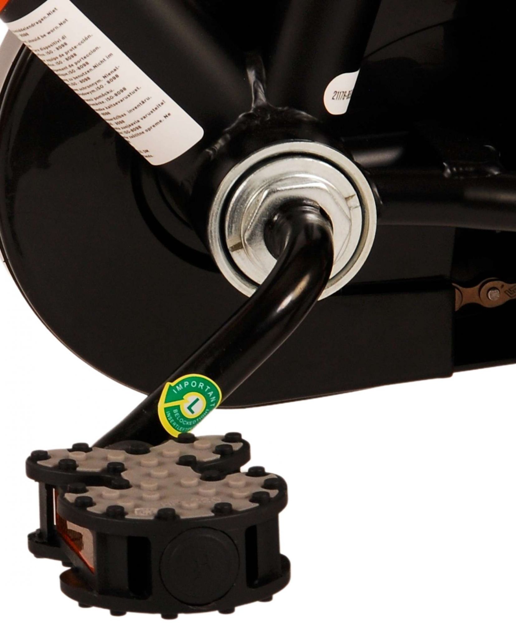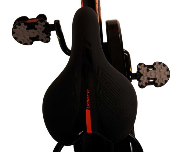 Safety comes first! That is why this cool bike has a handbrake and coaster brake, a closed chaincase and removable side wheels. In addition, the bike has a nice bell. Comfort has also been thought of. The beautiful black Volare bike with orange accents has a luxurious soft saddle, a handy rear carrier, and extra long mudguards to keep out all the dirt. To enjoy the bike as long as possible, the saddle and handlebars are adjustable in height. Comes with all the assembly materials needed to assemble the bike!