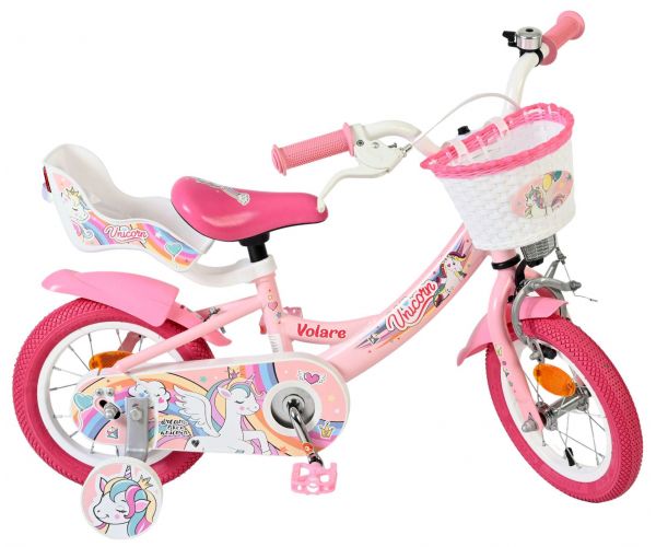 De Volare Unicorn 12 inch kinderfiets is gemaakt voor kleine dromers die elke rit willen omtoveren tot een magisch avontuur. Met haar zachte roze kleur, vrolijke unicorn-details en speels design is deze fiets een echte blikvanger.