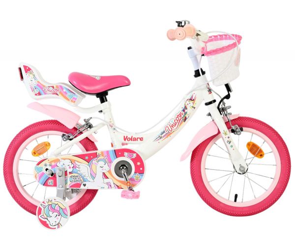 Volare Unicorn Kinderfiets - Meisjes - 14 inch - Wit - Twee Handremmen