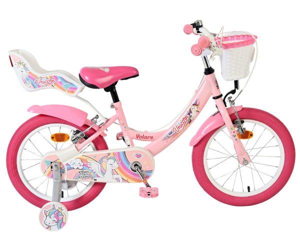 Volare Unicorn Kinderfiets - Meisjes - 16 inch - Roze - Twee Handremmen