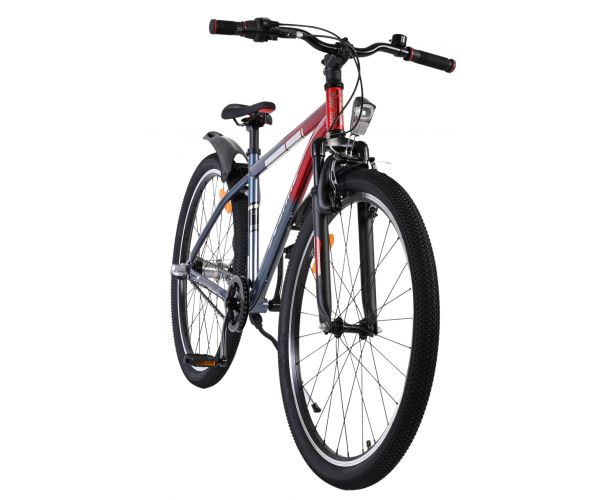 De Volare XC Race 26 inch kinderfiets is een sportieve en stijlvolle fiets voor jonge fietsers die van comfort en snelheid houden. Het stoere rood-grijze frame geeft de fiets een moderne uitstraling en maakt hem een echte blikvanger op de weg.