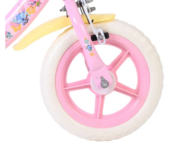 De 12 inch Stitch kinderfiets is ontworpen voor jonge fietsers die hun eerste avonturen willen beleven met een speelse en stoere uitstraling. Het roze frame, gecombineerd met de vrolijke Stitch-details, zorgt voor een opvallende en eigentijdse look die direct aanspreekt bij jonge kinderen.