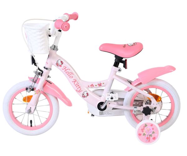 Met de Hello Kitty 12 inch kinderfiets in lichtroze wordt leren fietsen een feestje. Deze vrolijke fiets is ontworpen om jonge fietsers een veilige en comfortabele start te geven, met een stabiele en kindvriendelijke opbouw.