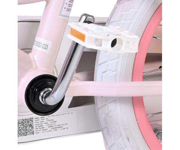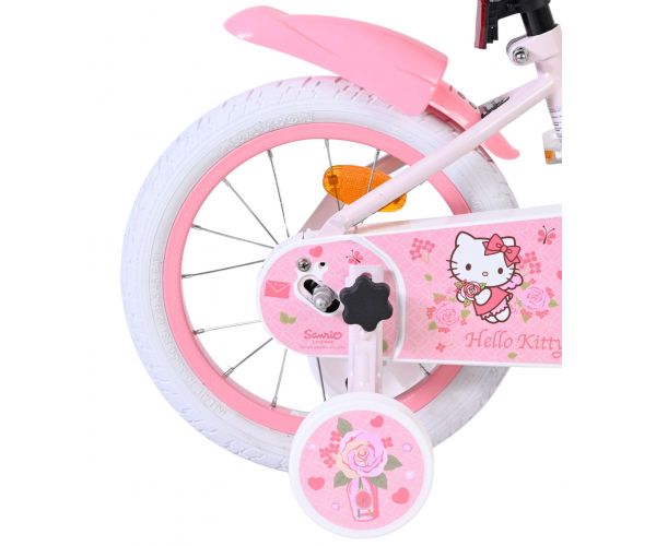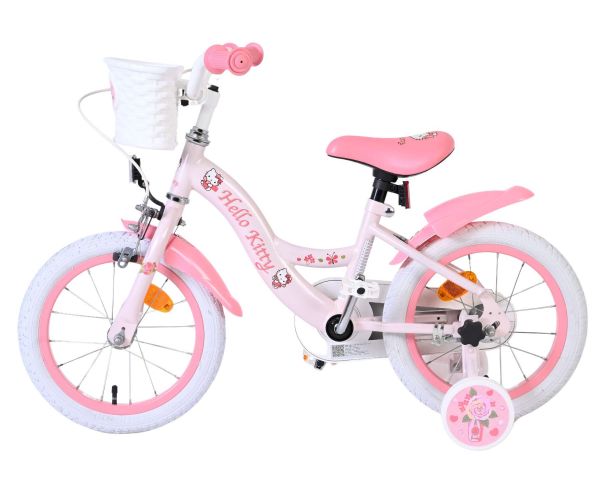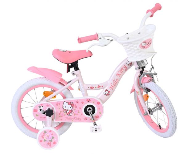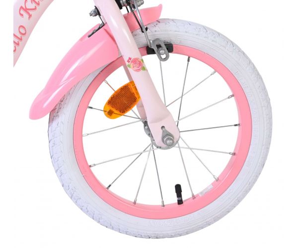 Met de Volare Hello Kitty 14 inch kinderfiets in lichtroze wordt leren fietsen een feestje. Deze vrolijke fiets is ontworpen om jonge fietsers een veilige en comfortabele start te geven, met een stabiele en kindvriendelijke opbouw.