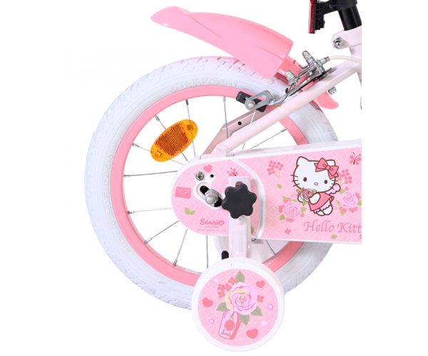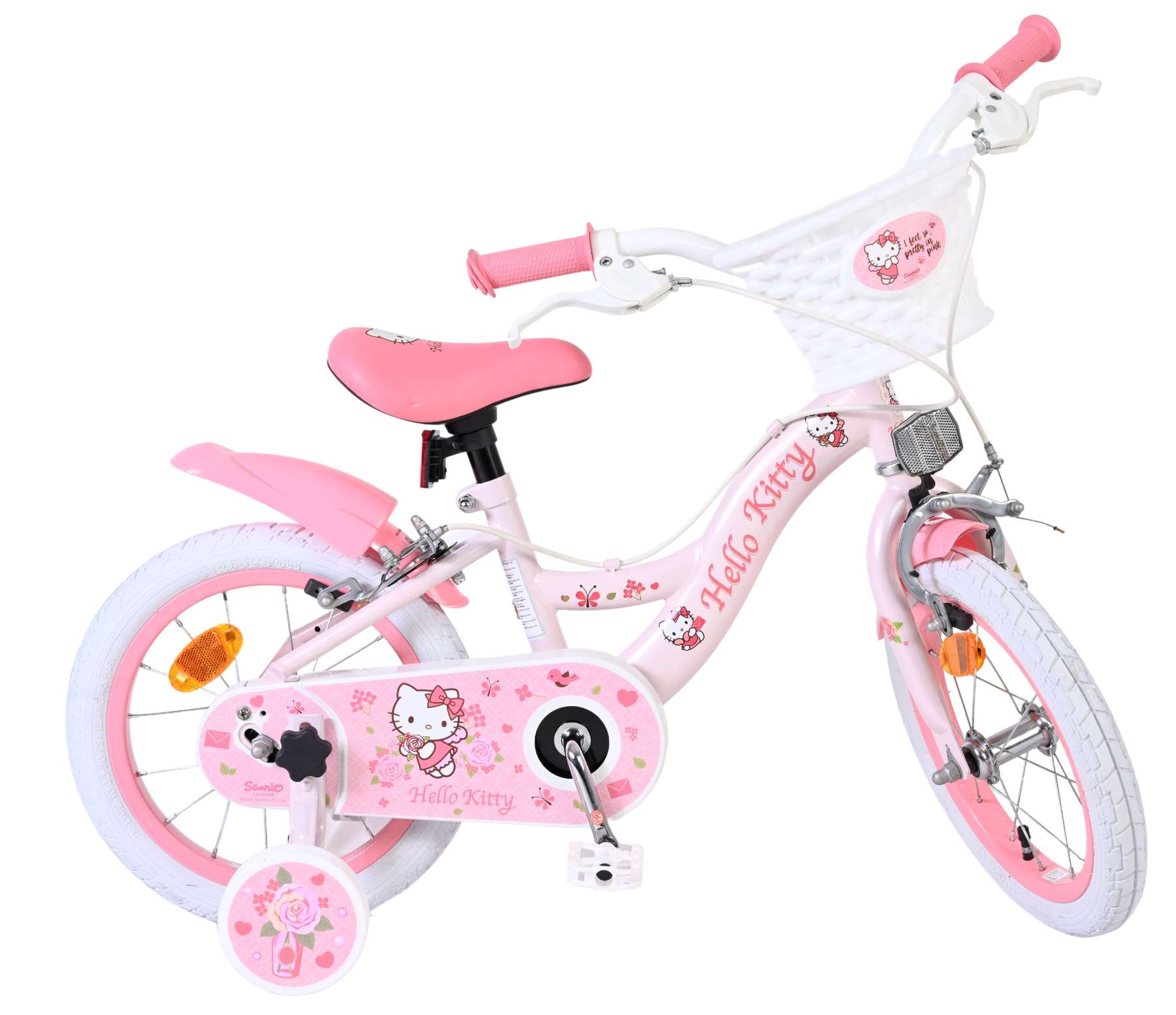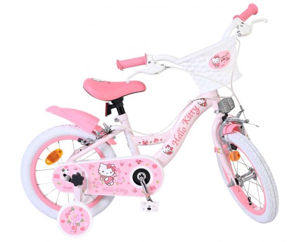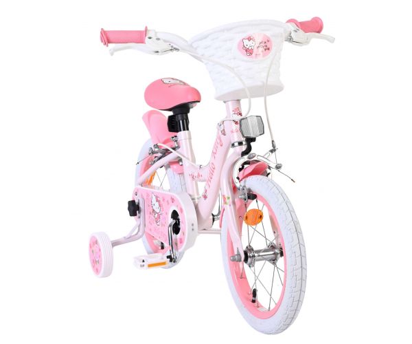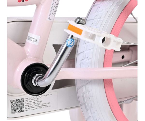 Met de Volare Hello Kitty 14 inch kinderfiets in lichtroze wordt leren fietsen een feestje. Deze vrolijke fiets is ontworpen om jonge fietsers een veilige en comfortabele start te geven, met een stabiele en kindvriendelijke opbouw.