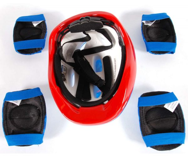 Paw Patrol Protectionset. Deze super mooie Paw Patrol Protectionset is een echte jongensset! De set bevat een helm, twee kniebeschermers en twee elleboogbeschermers. De lichtgewicht helm is uitgevoerd in de Deluxe versie, met meerdere gaten om het hoofd van uw kind koel te houden. De helm is makkelijk verstelbaar met een draaiknop in maat 51-55 cm, hij groeit met uw kind mee en kan daardoor langere tijd gebruikt worden. De knie- en elleboogbeschermers zijn beiden voorzien van stevige elastische bandjes die de beschermers tijdens het avontuur van uw kind op hun plaats houden.