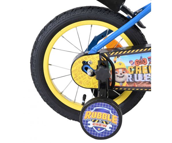 Voor kleine fans van PAW Patrol is er de stoere 14 inch Rubble kinderfiets van Volare – dé perfecte fiets om op avontuur te gaan! Deze robuuste kinderfiets is helemaal in stijl van Rubble, de vriendelijke bouwpup uit de populaire kinderserie. Op het frame en op het opvallende voorplaatje staan vrolijke afbeeldingen van Rubble, klaar om je kind te vergezellen op elke rit.