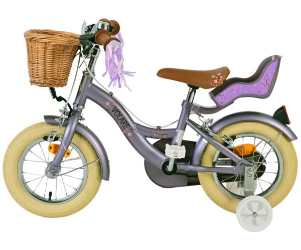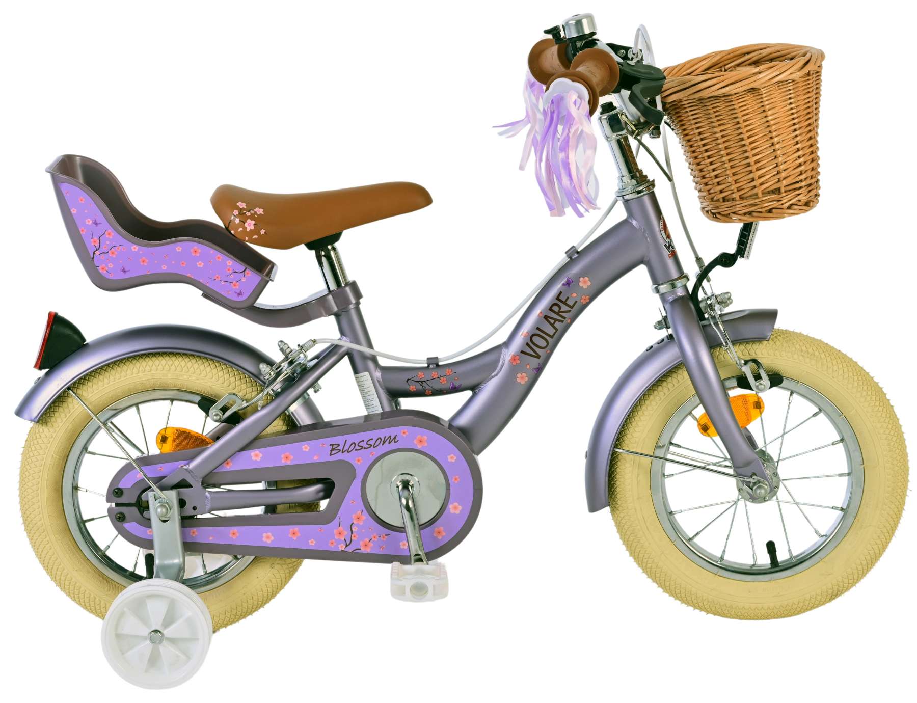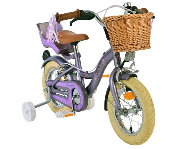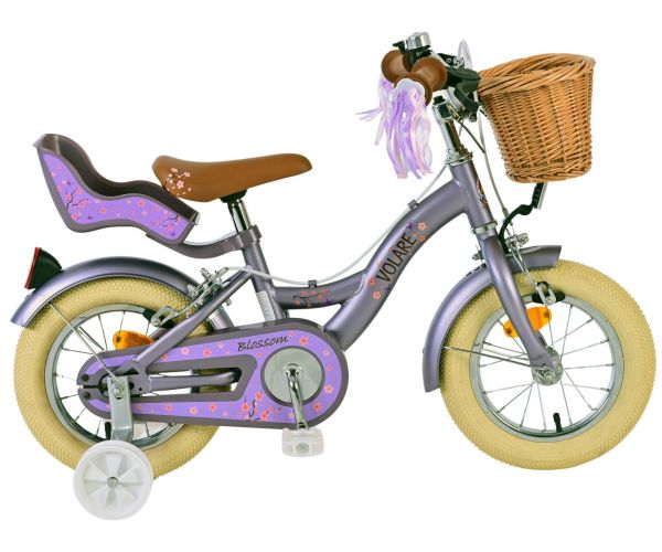Vélo enfant Volare Blossom - Filles - 12 pouces - Violet - Freins à deux mains