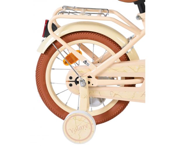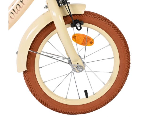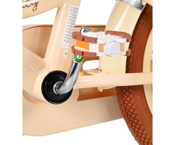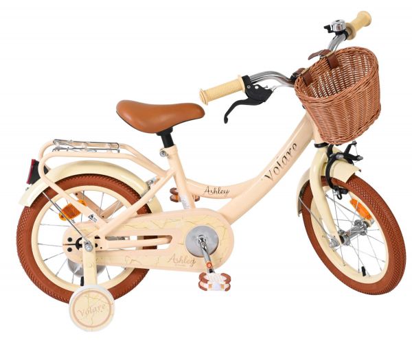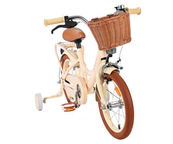 De Volare Ashley 14 inch kinderfiets is een perfecte combinatie van comfort, gebruiksgemak en een vrolijk design. Deze mooie creme fiets is uitgerust met zowel een terugtraprem als een handrem, zodat je kind op een prettige manier leert remmen. De afneembare zijwielen zorgen voor extra stabiliteit tijdens het leren fietsen en kunnen eenvoudig worden verwijderd zodra je kind meer vertrouwen heeft.