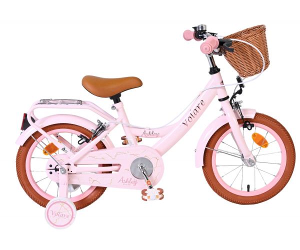 Ook aan praktisch gebruik is gedacht. Het mandje aan de voorkant is ideaal voor het meenemen van speelgoed of andere spulletjes, terwijl de stevige achterdrager zorgt voor extra gebruiksgemak. Met zijn frisse roze kleur en complete uitrusting is de Volare Ashley 14 inch kinderfiets een fijne en betrouwbare keuze voor jonge fietsers.