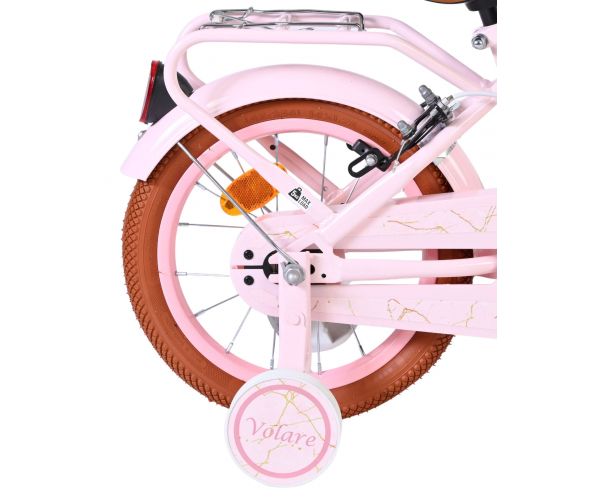 De Volare Ashley 14 inch kinderfiets is een vrolijke en comfortabele fiets die perfect past bij de volgende stap in het leren fietsen. Deze mooie roze fiets is uitgerust met twee handremmen (geen terugtraprem), zodat je kind op een gecontroleerde en vertrouwde manier leert remmen. De afneembare zijwielen bieden extra stabiliteit in het begin en kunnen eenvoudig verwijderd worden zodra je kind zelfstandig kan fietsen.