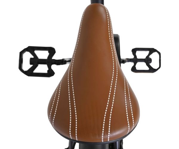 Veiligheid staat voorop! Daarom heeft deze gave fiets een handrem en een terugtraprem, een gesloten kettingkast en afneembare zijwieltjes. Daarnaast heeft de fiets een leuke bel. Ook aan het comfort is gedacht. De mooie zwarte Volare fiets met bruine accenten heeft een zacht zadel, een tijdloos design, en een uniek frame dat wel tegen een stootje kan. Om zo lang mogelijk van de fiets te kunnen genieten zijn het zadel en stuur in hoogte verstelbaar.