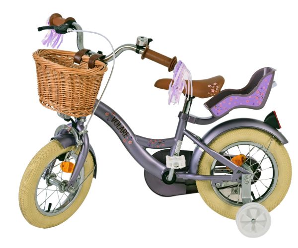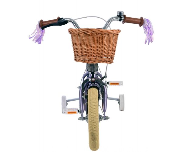 Veiligheid staat voorop! Daarom heeft deze gave fiets een handrem en terugtraprem, afneembare zijwieltjes en een gesloten kettingkast. Ook aan het comfort is gedacht. De mooie paarse Volare fiets heeft een comfortabel zacht zadel, een poppenzitje, een handig rieten mandje en vrolijke handvatstreamers op de fiets op te fleuren Om zo lang mogelijk van de fiets te kunnen genieten zijn het zadel en stuur in hoogte verstelbaar. Wordt geleverd inclusief al het montagemateriaal dat nodig is om de fiets in elkaar te zetten!