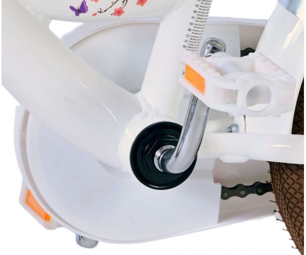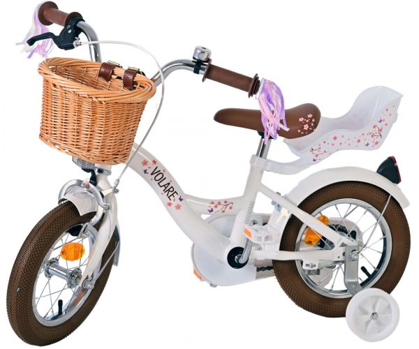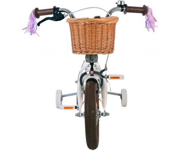 Veiligheid staat voorop! Daarom heeft deze gave fiets een handrem en terugtraprem, afneembare zijwieltjes en een gesloten kettingkast. De fiets heeft reflectoren van voor, achter en in de wielen. Ook aan het comfort is gedacht. De mooie witte Volare fiets heeft een comfortabel zacht zadel, een poppenzitje, een handig rieten mandje en vrolijke handvatstreamers op de fiets op te fleuren Om zo lang mogelijk van de fiets te kunnen genieten zijn het zadel en stuur in hoogte verstelbaar. Wordt geleverd inclusief al het montagemateriaal dat nodig is om de fiets in elkaar te zetten!