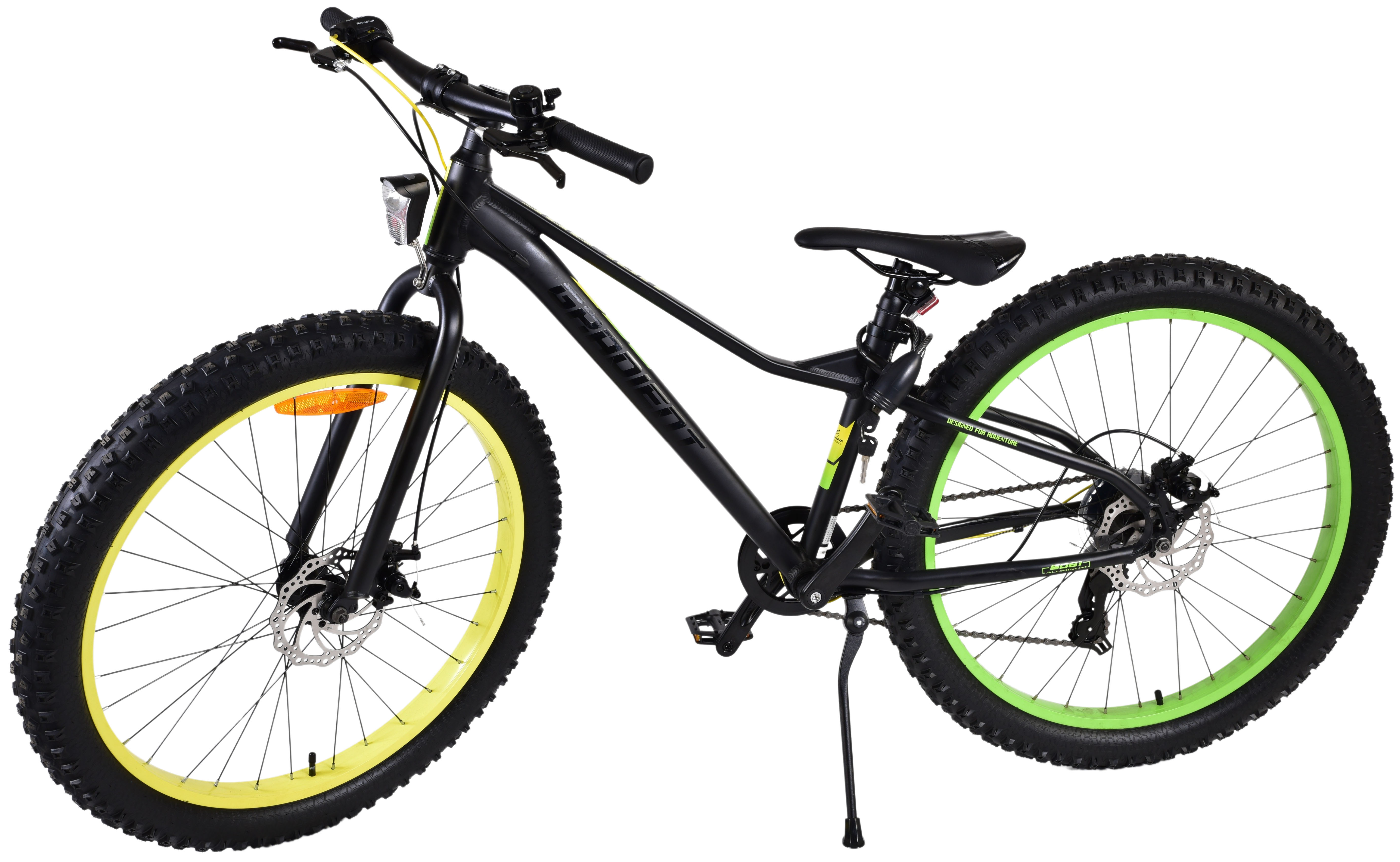 La sécurité avant tout ! C'est pourquoi ce vélo cool n'a pas de frein à pédale arrière mais deux freins à main. En outre, le vélo est équipé de feux avant et arrière, d'un antivol solide et d'une sonnette. La potence inclinée du guidon permet de mieux voir la route, mais n'est donc pas réglable en hauteur. Le confort a également été pensé. Le magnifique vélo Volare noir aux accents jaunes et verts est doté d'un cadre en aluminium ultraléger, d'un support pour que votre vélo reste bien en place, de pneus extra-larges, de 7 vitesses et de poignées souples en craton. Pour profiter du vélo le plus longtemps possible, la selle est réglable en hauteur.
