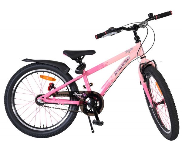 De Volare Mystic is voorzien van verlichting aan de voor- en achterkant en reflectoren in de wielen, wat zorgt voor goede zichtbaarheid in het verkeer. Het sportieve karakter wordt extra benadrukt door de opvallende roze spaken, die de fiets een unieke uitstraling geven. Daarnaast beschikt de fiets over een slot en een bel, zodat je kind veilig en goed voorbereid op pad kan.