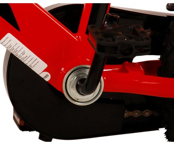 Veiligheid staat voorop! Daarom heeft deze gave fiets geen terugtraprem maar twee handremmen, een gesloten kettingkast en afneembare zijwieltjes. Daarnaast heeft de fiets een leuke bel. Ook aan het comfort is gedacht. De mooie rode Volare fiets met zwarte accenten heeft een extra licht aluminium frame, een luxe zacht zadel, een strak frame dat wel tegen een stootje kan, en extra lange spatborden om al het vuil tegen te houden. Om zo lang mogelijk van de fiets te kunnen genieten heeft de fiets een extra lange zadelpen waardoor de fiets nóg langer meegroeit. Wordt geleverd inclusief al het montagemateriaal dat nodig is om de fiets in elkaar te zetten!