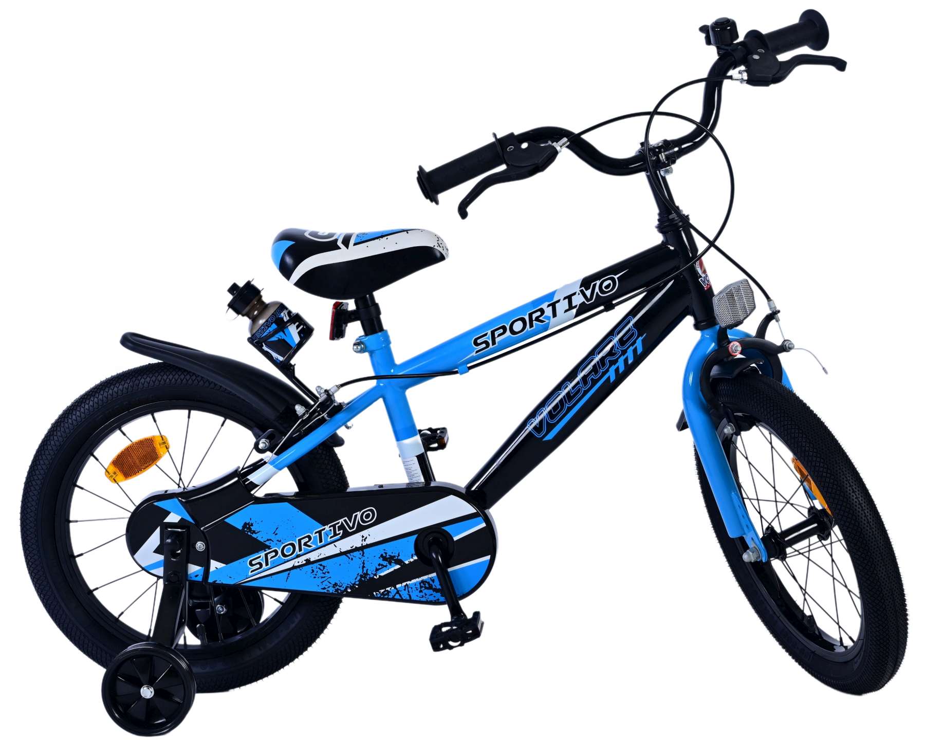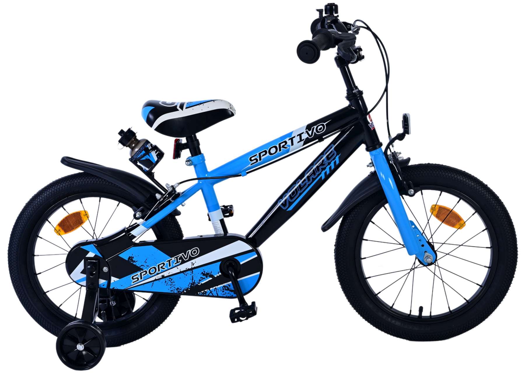 Veiligheid staat voorop! Daarom heeft deze gave fiets geen terugtraprem maar twee handremmen en afneembare zijwieltjes. Daarnaast heeft de fiets reflectoren op de trappers. Ook aan het comfort is gedacht. De mooie zwart/blauwe Volare fiets heeft een bidonhouder met bidon en gesloten kettingkast ter bescherming van de vingers. Om zo lang mogelijk van de fiets te kunnen genieten zijn het zadel en stuur in hoogte verstelbaar.