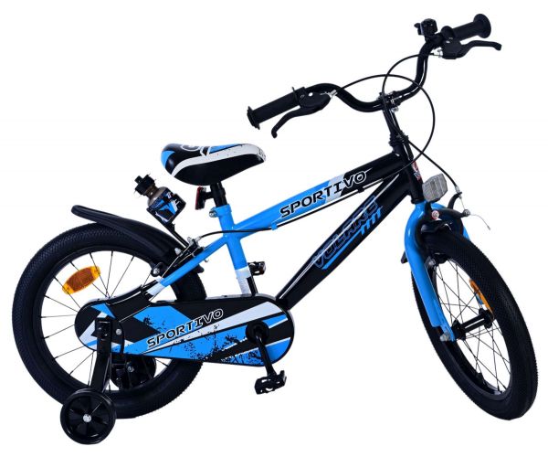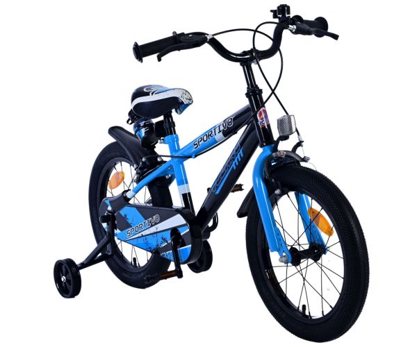 Volare Sportivo Kinderfiets - Jongens - 16 inch - Blauw Zwart - Twee Handremmen