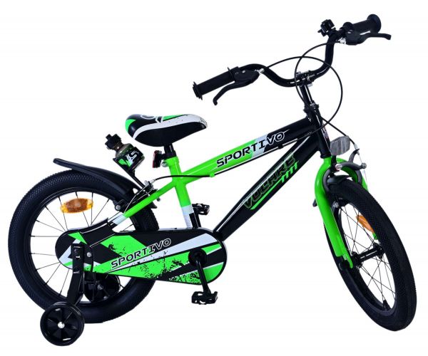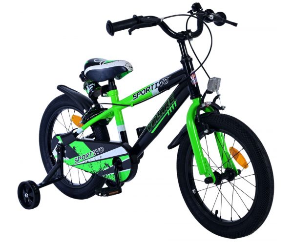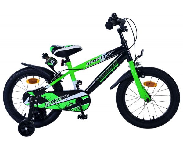 Volare Sportivo Kinderfiets - Jongens - 16 inch - Groen Zwart - Twee Handremmen