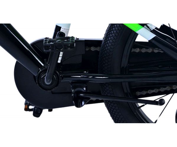 Veiligheid staat voorop! Daarom heeft deze gave fiets geen terugtraprem maar twee handremmen en afneembare zijwieltjes. Daarnaast heeft de fiets reflectoren op de trappers. Ook aan het comfort is gedacht. De mooie zwart/groene Volare fiets heeft een bidonhouder met bidon en gesloten kettingkast ter bescherming van de vingers. Om zo lang mogelijk van de fiets te kunnen genieten zijn het zadel en stuur in hoogte verstelbaar.