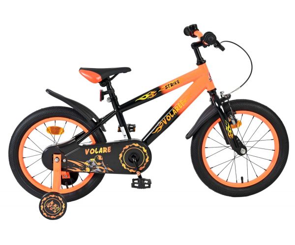 De Volare Strike 16 inch kinderfiets is de ideale fiets voor jonge avonturiers die graag in stijl op pad gaan. Met zijn stoere zwart-oranje design en sportieve uitstraling is deze fiets een echte blikvanger voor elke kleine fietser.
