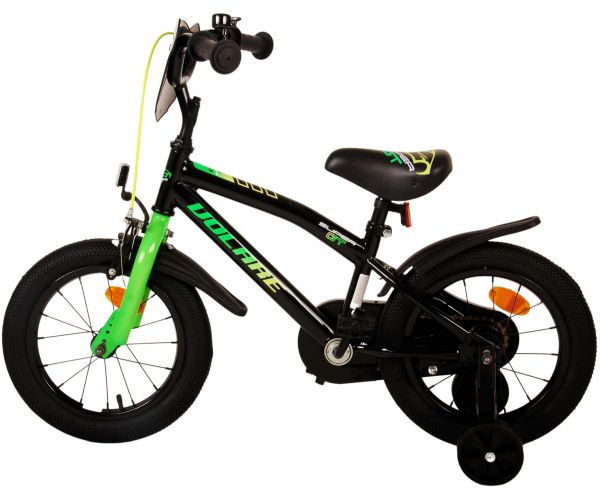 Veiligheid staat voorop! Daarom heeft deze gave fiets geen terugtraprem maar twee handremmen, een gesloten kettingkast en afneembare zijwieltjes. Daarnaast heeft de fiets reflectoren in de wielen, voor- en achterop de fiets en een leuke bel. Ook aan het comfort is gedacht. De mooie zwarte Volare fiets met groene accenten heeft een zacht zadel, een tijdloos design, en een uniek frame dat wel tegen een stootje kan. Om zo lang mogelijk van de fiets te kunnen genieten zijn het zadel en stuur in hoogte verstelbaar. Wordt geleverd inclusief al het montagemateriaal dat nodig is om de fiets in elkaar te zetten!
