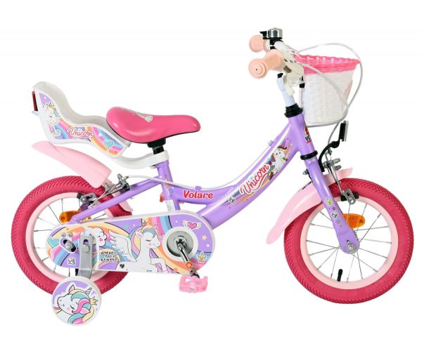 Volare Unicorn Kinderfiets - Meisjes - 12 inch - Paars - Twee handremmen