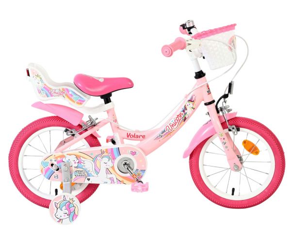 De Volare Unicorn 14 inch is een kleurrijke en speelse meisjesfiets voor kinderen die dol zijn op Unicorns en avontuur. Deze prachtige roze fiets is versierd met vrolijke Unicorn- en regenboogdetails, waardoor elke rit extra magisch wordt.
