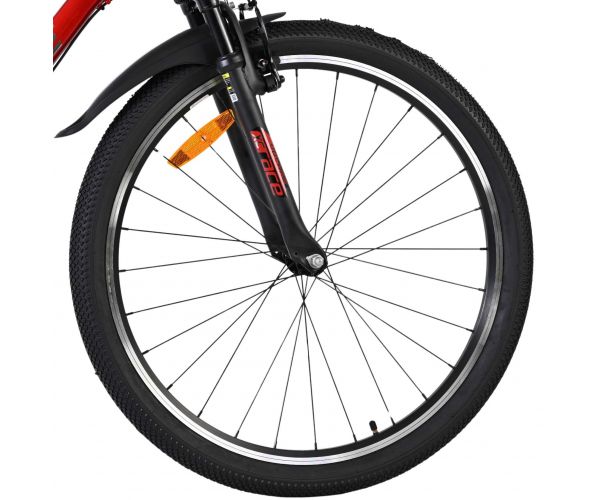 De Volare XC Race 26 inch kinderfiets is een sportieve en stijlvolle fiets voor jonge fietsers die van comfort en snelheid houden. Het stoere rood-grijze frame geeft de fiets een moderne uitstraling en maakt hem een echte blikvanger op de weg.