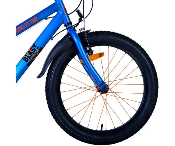 NERF 20 inch kinderfiets. De NERF games worden nóg spannender met de snelheid van deze stoere fiets. Deze super coole fiets is helemaal in de stijl van de oranjeblauwe NERF blasters. Het geometrische frame maakt van deze fiets een echte eyecatcher. De fiets heeft extra brede 20 inch fat tires en 6 versnellingen wat de ideale fiets maakt. Ook de spatborden zijn extra groot en mooi gevormd waardoor zij al het opspattende vuil tegenhouden. Deze fiets heeft 2 handremmen.