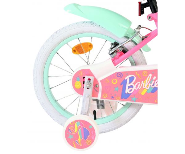 De Barbie 16 inch kinderfiets combineert stijl, veiligheid en plezier – perfect voor elk avontuur in echte Barbie-stijl.