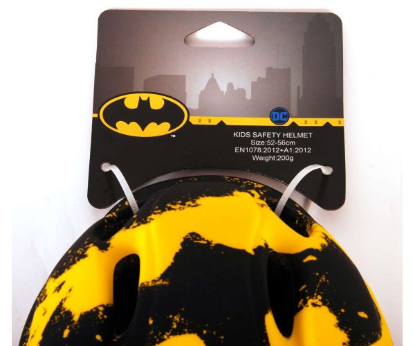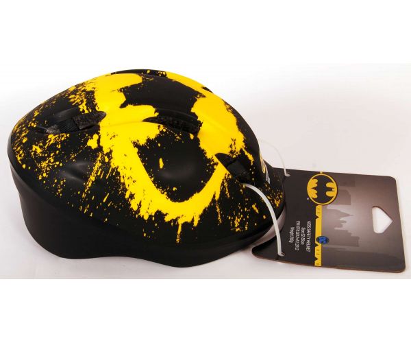 Volare Bicycles posiada dużą kolekcję licencjonowanych kasków. Jednym z nich jest ten piękny kask rowerowy Batmana. Piękny czarno-żółty kolor i logo Batmana nadają hełmowi doskonały wygląd. Za pomocą pokrętła można regulować obwód głowy kasku w zakresie od 52 do 56 cm. Dolna część kasku jest również zakryta. Hełm waży tylko 200 gramów. Dzięki temu jest bardzo lekki, a przez to łatwy do noszenia. Kask jest zatwierdzony zgodnie z najbardziej rygorystycznymi wymaganiami TÜV/GS.