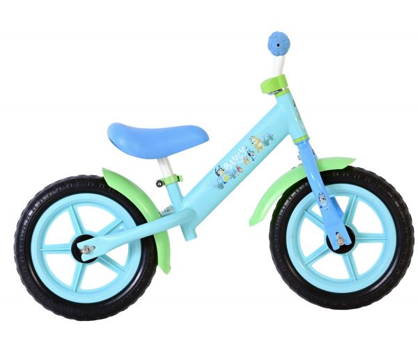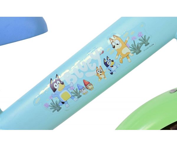 Speciaal voor de allerkleinste avonturiers is er deze schattige Bluey loopfiets in een frisse lichtblauwe kleur. De fiets is prachtig versierd met vrolijke afbeeldingen van Bluey, het bekende hondje uit de populaire kinderserie.
