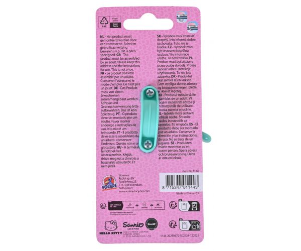 De Hello Kitty bel in roze maakt elke fiets net een stukje leuker. Met het vrolijke Hello Kitty design is het een echte eyecatcher op het stuur. Natuurlijk klinkt hij ook lekker duidelijk, zodat je goed hoorbaar bent onderweg. Eenvoudig te monteren en perfect voor elke kinderfiets.